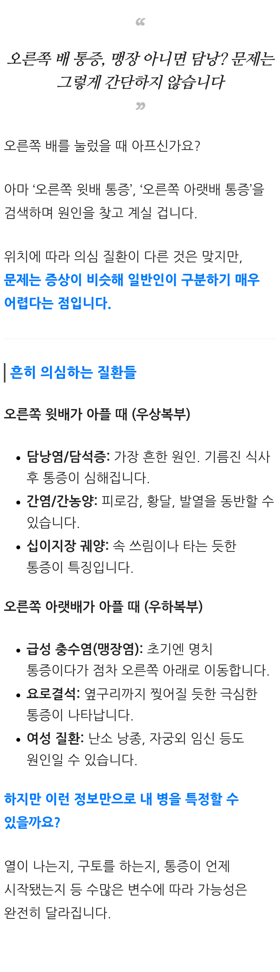 오른쪽 배 누르면 통증 윗배 아랫배 의심질환 정리